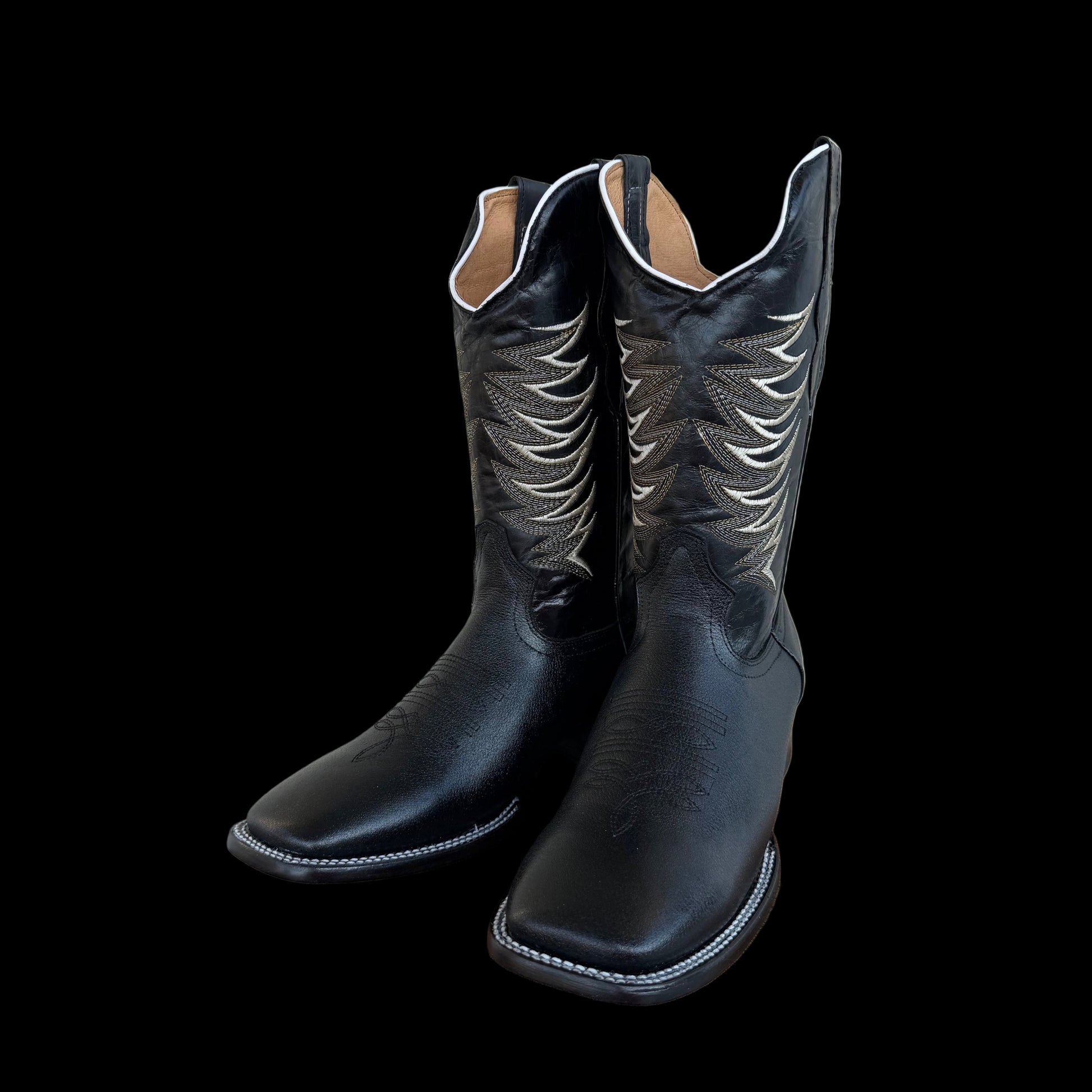 Men’s Espina in Borrego Negro.Handcrafted in Mexico from 100% genuine leather, these boots feature a square toe, sturdy leather-stacked heel, and detailed stitching. The leather pull strap makes them easy to wear, and the leather sole with heel ensures comfort and traction. Durable, stylish, and made to last. perfect for those who want a classic, sleek, and effortlessly look.