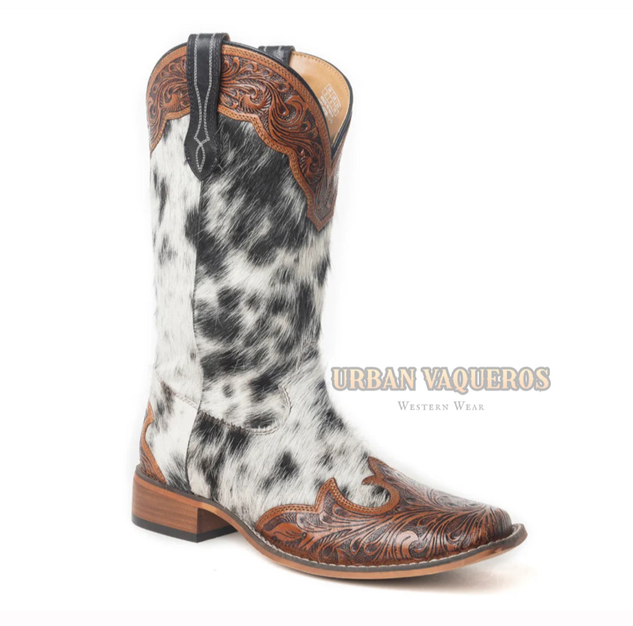 Mesa Cloud Hand Tooled Leather Boots-Black & White