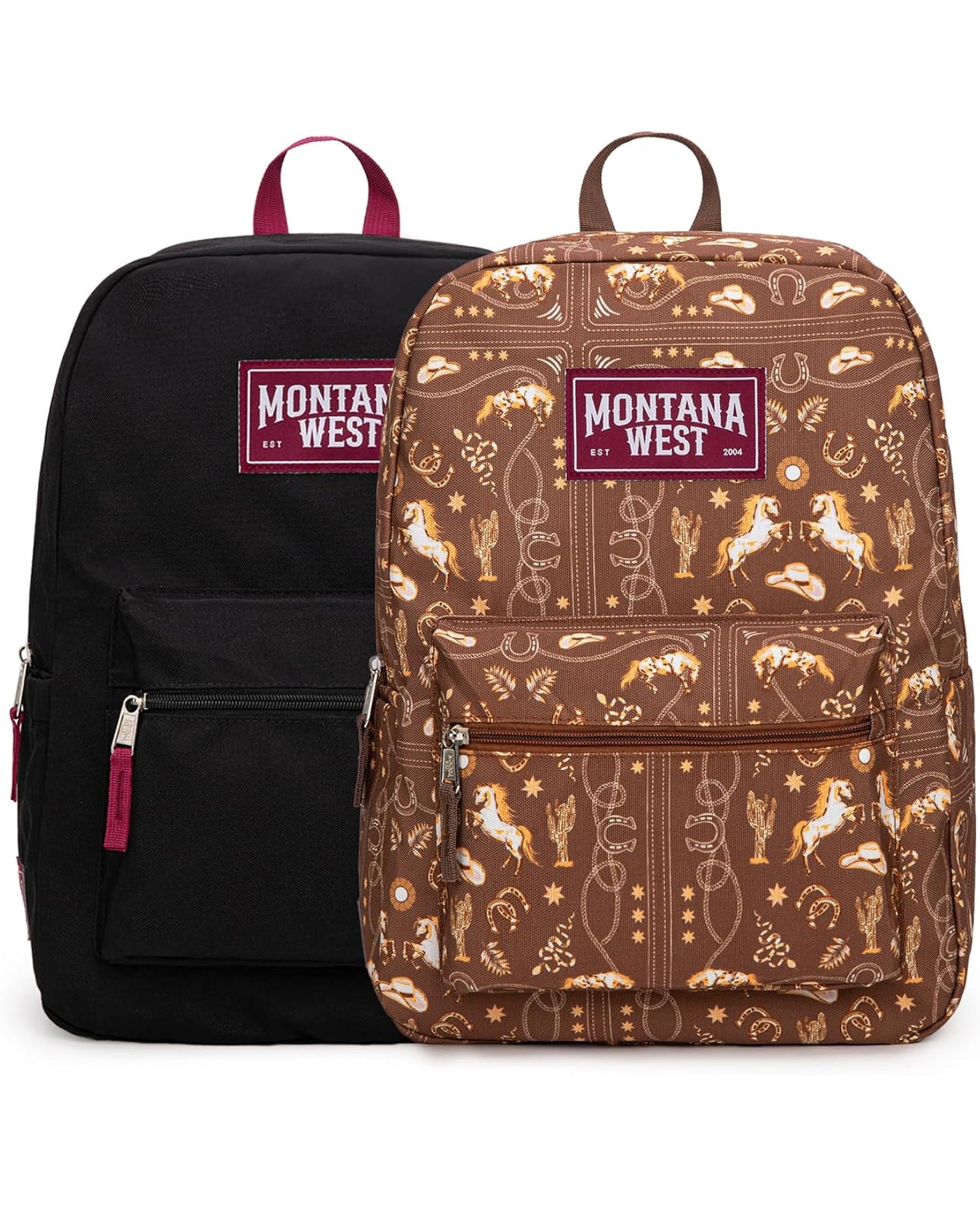 Comes with 1 Patterned Horseshoe Print Backpack and 1 Solid Black Backpack. Great for sharing, swapping, or keeping a backup.