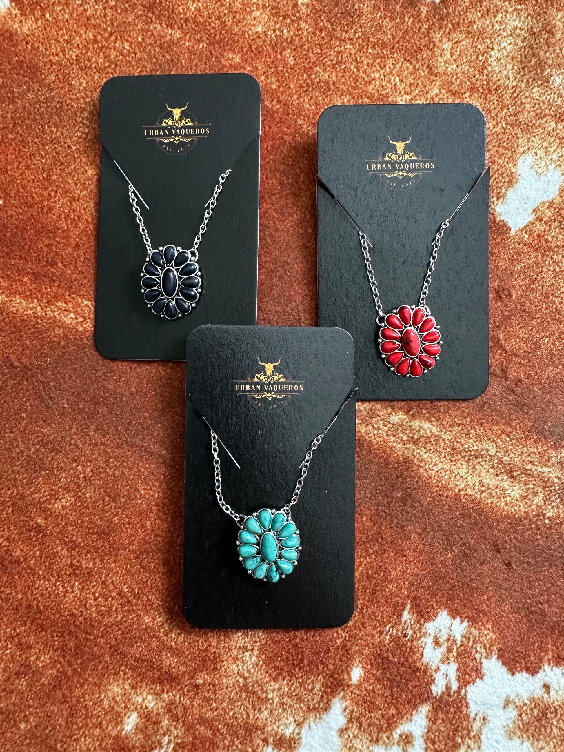 Add some western flair to your outfit with this unique oval pendant necklace.
