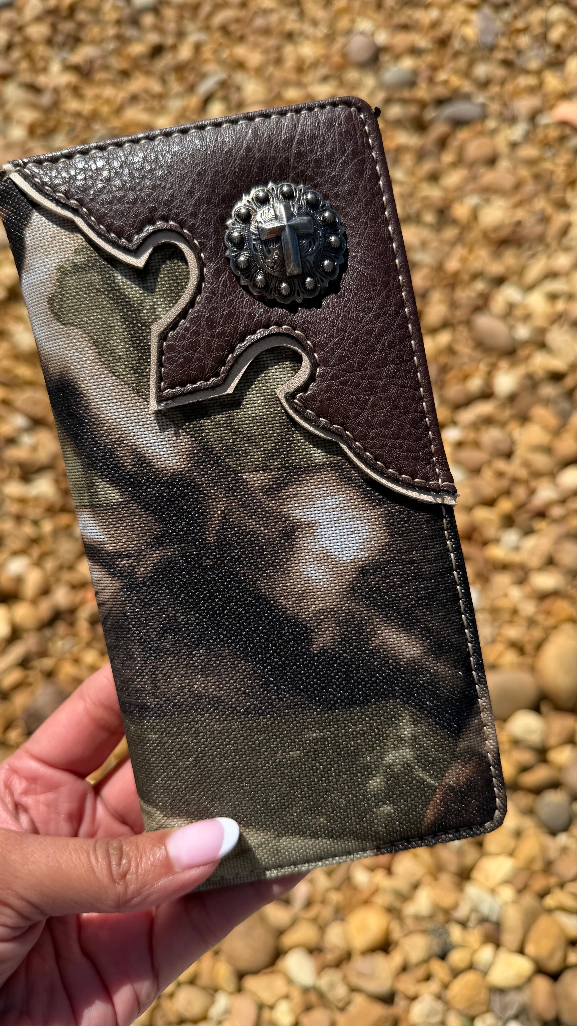 Men’s Camo Long Antique Silver Cross Concho Wallet