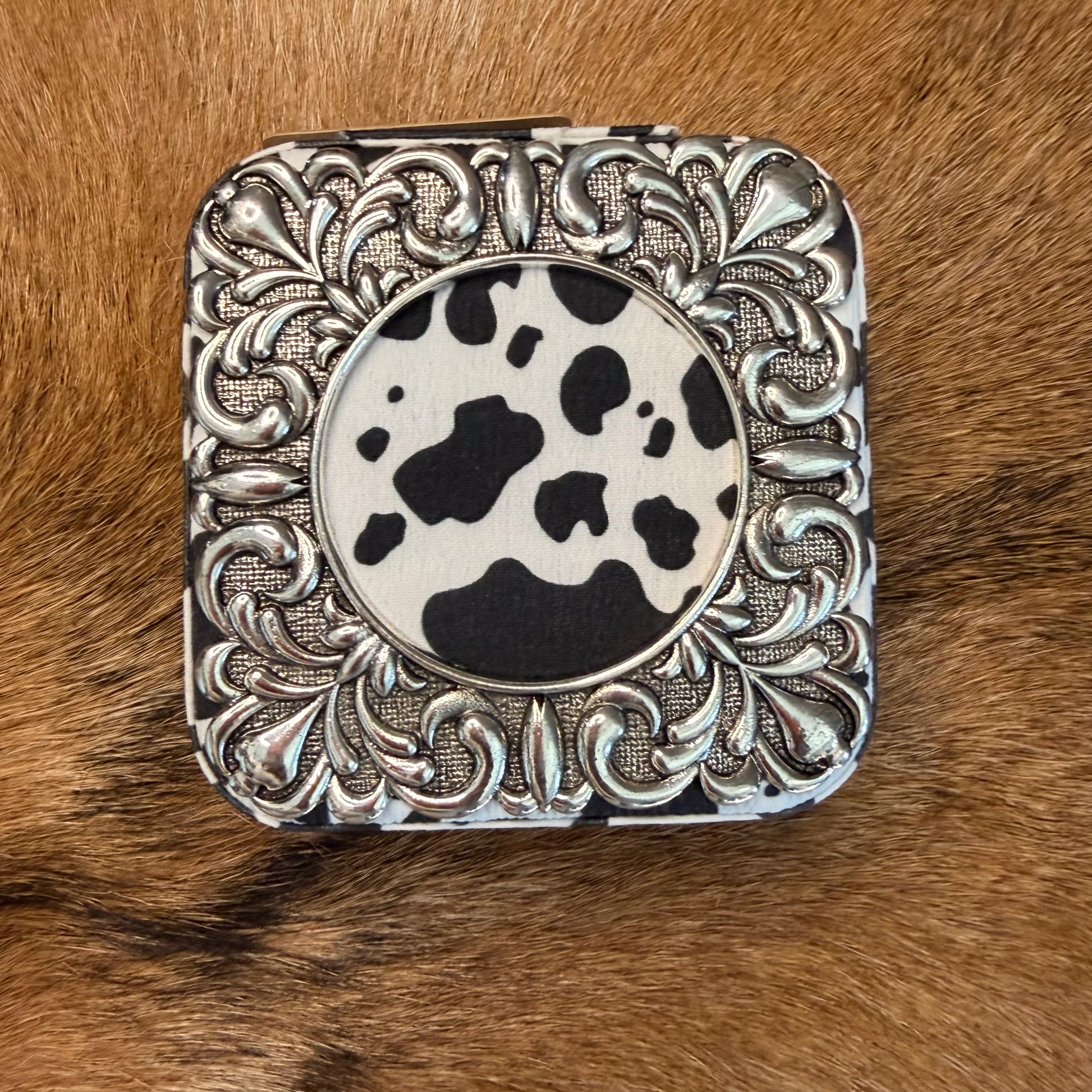 Organized interior: includes a mirror, earring holders, pocket, ring slots, necklace holder.