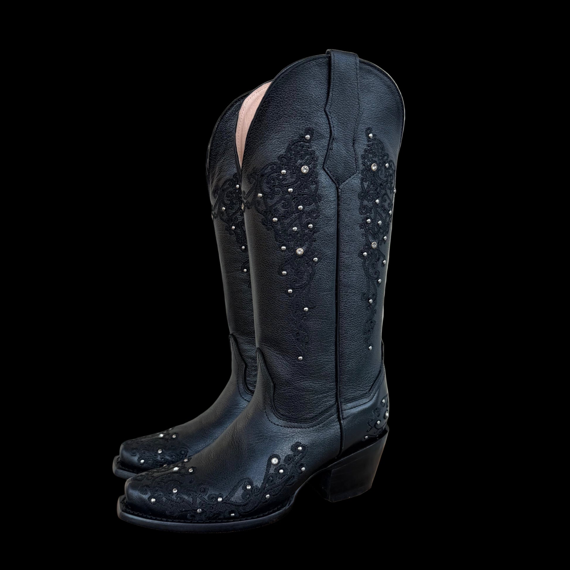 Introducing the Women’s Sonia in Cera Negro—a sleek, elegant boot crafted for the woman who appreciates refined edge. Rich black leather is elevated with delicate embroidery and studded details, creating a perfect balance of sophistication and bold style. Whether you’re dressing up for a night out or elevating your everyday look, this boot transitions effortlessly from one occasion to the next. Embroidered. Studded. Designed to perfection.